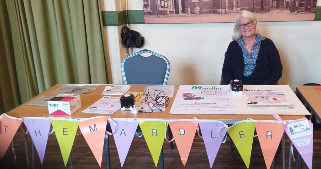 Mardlers Beverley Hopkins, Marylyn Evans and Imogen Waterson (pictured) took turns explaining to visitors what we do. Many thanks to Beverley for organising the stall and making the splendid bunting.